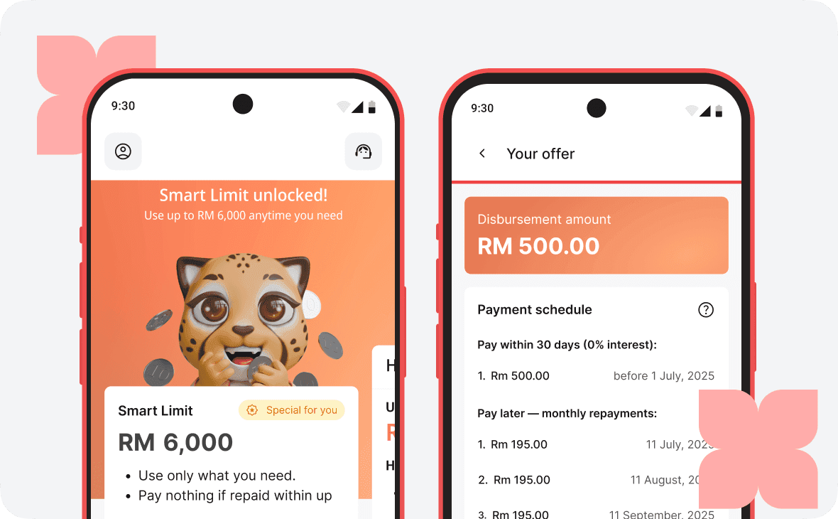Access up to RM6,000 and withdraw only the amount you choose to your bank account.